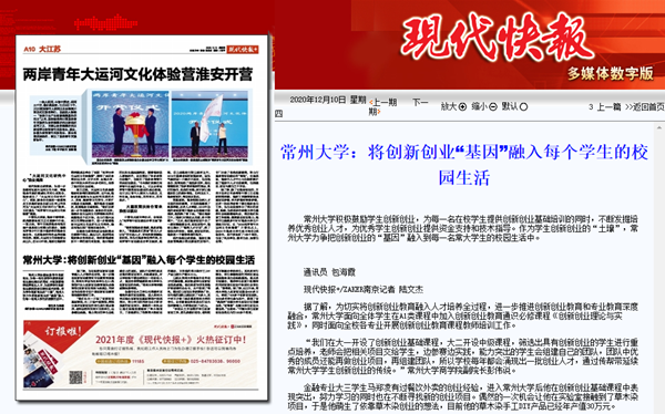 | 现代快报:常州大学,将创新创业“基因”融入每个学生的校园生活 |