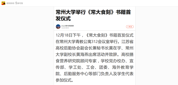 | 搜狐新闻:常州大学举行《常大食刻》书籍首发仪式 |