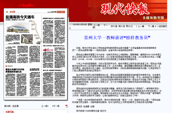 | 现代快报:常州大学一教师获评“榜样教务员” |