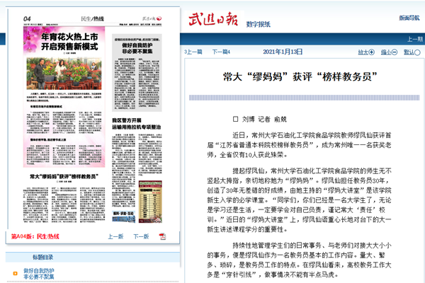 | 武进日报:常大“缪妈妈”获评“榜样教务员” |