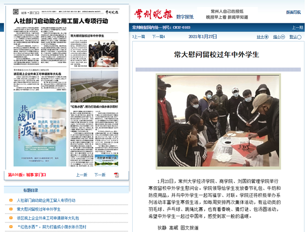 | 常州晚报:常大慰问留校过年中外学生 |