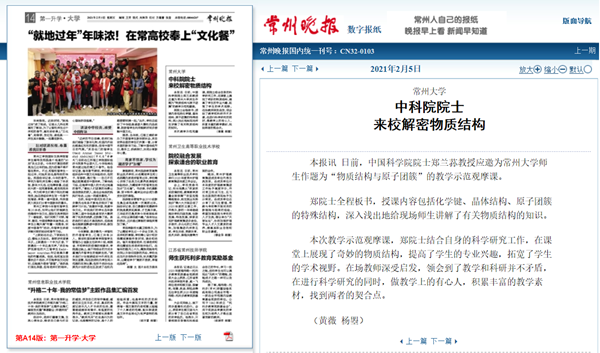 | 常州晚报:中科院院士来校解密物质结构 |