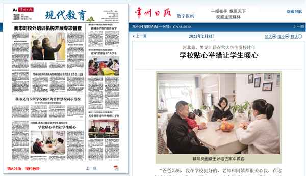 | 常州日报:河北籍、黑龙江籍在常大学生留校过年 学校贴心举措让学生暖心 |