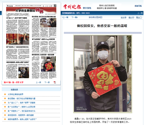 | 常州晚报:做校园保安,他感受家一般的温暖 |