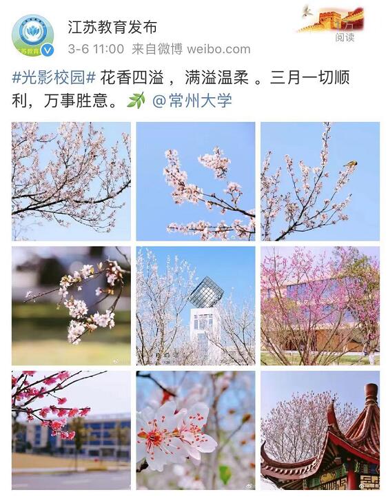 江苏教育发布(微博);#光影校园# 三月一切顺利,万事胜意