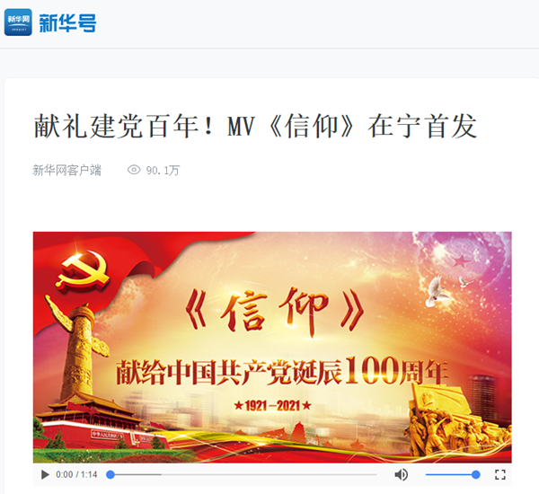 | 新华网客户端:献礼建党百年!MV《信仰》在宁首发 |