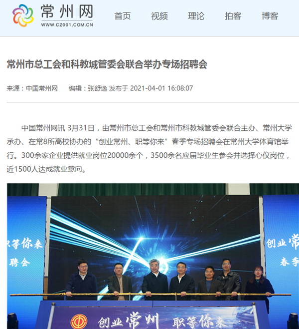 | 中国常州网:常州市总工会和科教城管委会联合举办专场招聘会 |