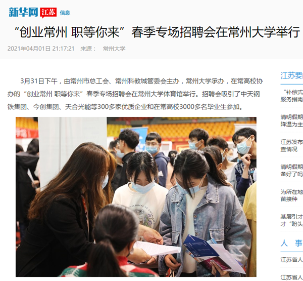 | 新华网:“创业常州 职等你来”春季专场招聘会在常州大学举行 |