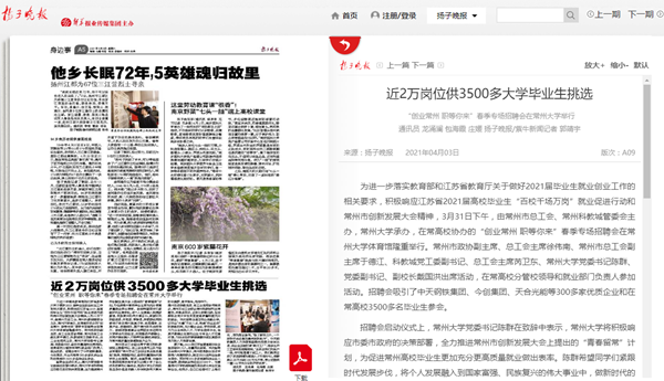 | 扬子晚报:“创业常州 职等你来”春季专场招聘会在常州大学举行 |