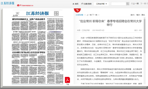 | 江苏经济报:“创业常州 职等你来”春季专场招聘会在常州大学举行 |