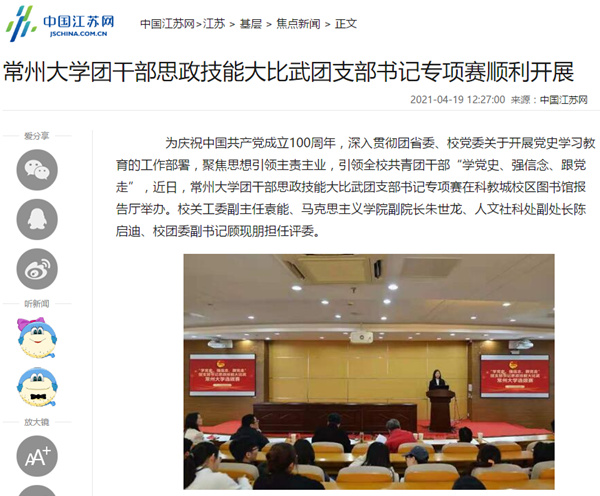 | 中国江苏网:常州大学团干部思政技能大比武团支部书记专项赛顺利开展 |