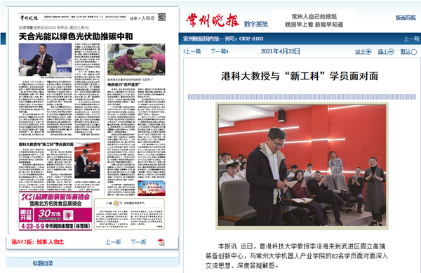 | 常州晚报:港科大教授与“新工科”学员面对面 |