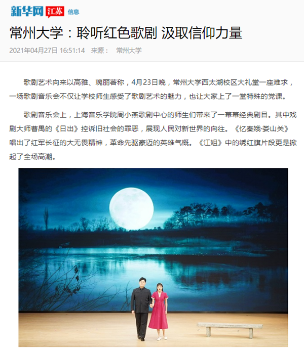 | 新华网:常州大学——聆听红色歌剧 汲取信仰力量 |
