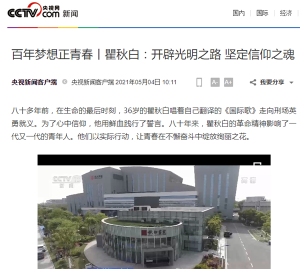 | 央视网:百年梦想正青春丨瞿秋白:开辟光明之路 坚定信仰之魂 |