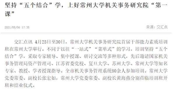 | 交汇点:坚持“五个结合”学,上好常州大学机关事务研究院“第一课” |