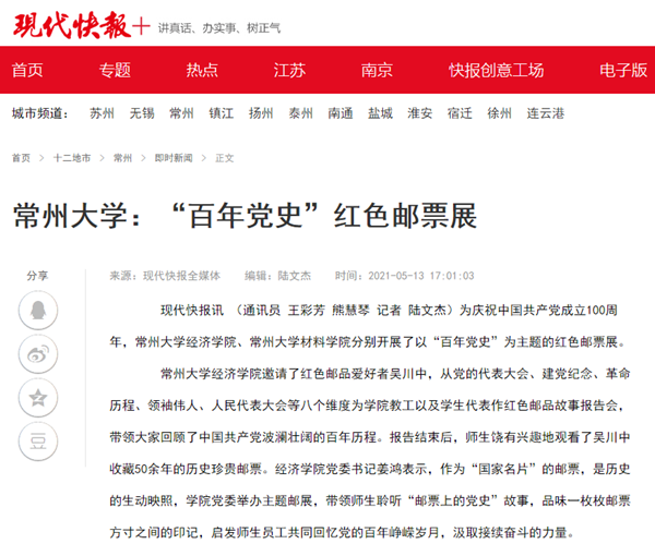 | 现代快报网:常州大学——“百年党史”红色邮票展 |