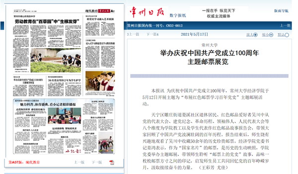 | 常州日报:常州大学举办庆祝中国共产党成立100周年主题邮票展览 |