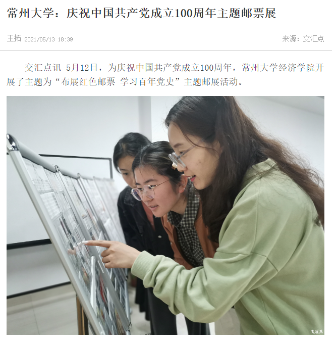 | 交汇点:常州大学——庆祝中国共产党成立100周年主题邮票展 |