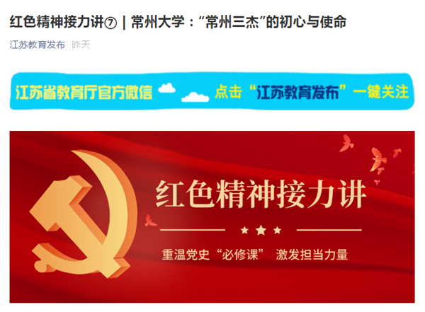 | 江苏教育发布(微信):红色精神接力讲⑦ | 常州大学:“常州三杰”的初心与使命 |