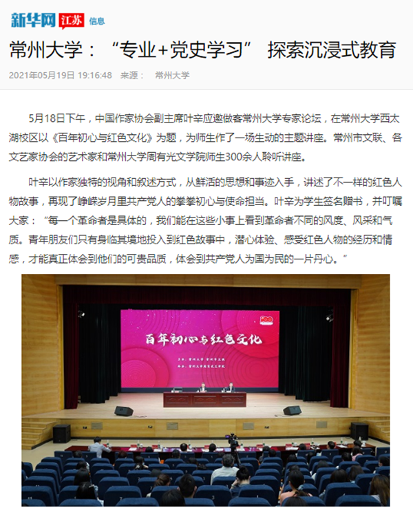 | 新华网:常州大学——“专业+党史学习” 探索沉浸式教育 |