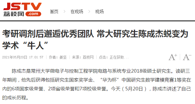 | 荔枝新闻:考研调剂后邂逅优秀团队 常大研究生陈成杰蜕变为学术“牛人” |
