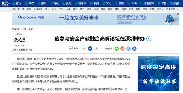 | 新华网:应急与安全产教融合高峰论坛在深圳举办 |