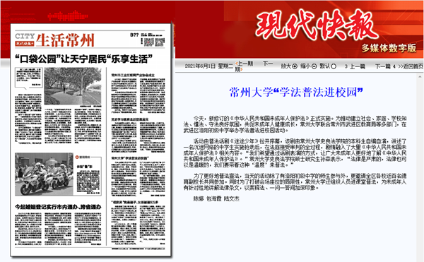 | 现代快报:常州大学“学法普法进校园” |