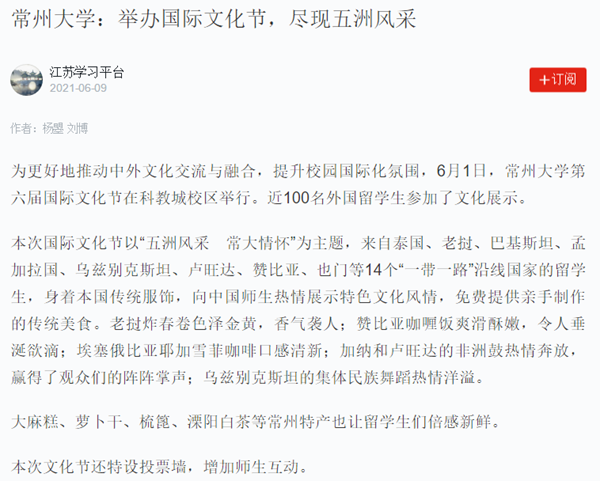 | 学习强国:常州大学举办国际文化节,尽现五洲风采 |