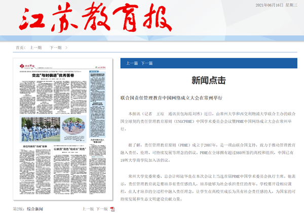| 江苏教育报:联合国责任管理教育中国网络成立大会在常州举行 |