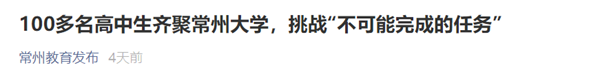 | 常州教育发布:100多名高中生齐聚常州大学,挑战“不可能完成的任务” |