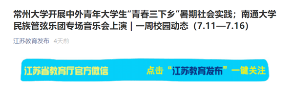 | 江苏教育发布(微信):常州大学开展中外青年大学生“青春三下乡”暑期社会实践 | 一周校园动态(7.11—7.16) |