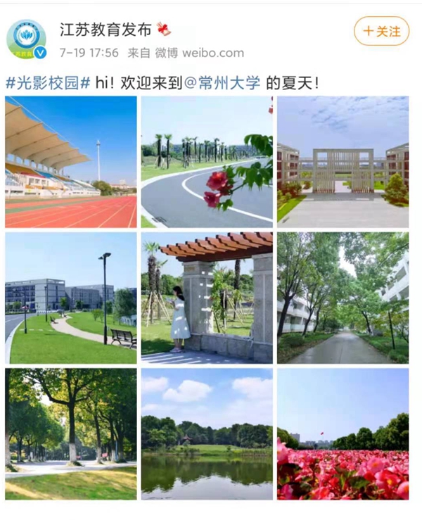 江苏教育发布(微博):#光影校园# hi!欢迎来到@常州大学 的夏天!
