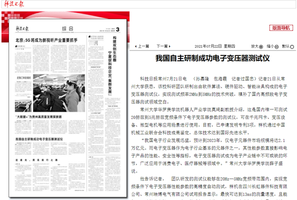 | 科技日报:我国自主研制成功电子变压器测试仪 |