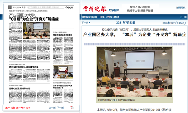 | 常州晚报:产业园区办大学, “00后”为企业“开良方”解痛症 |