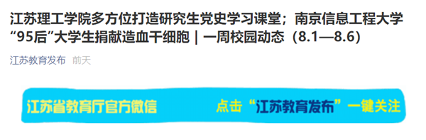 | 江苏教育发布(微信):一周校园动态(8.1—8.6) |