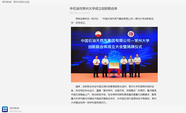 | 常州新闻:中石油与常州大学成立创新联合体 |