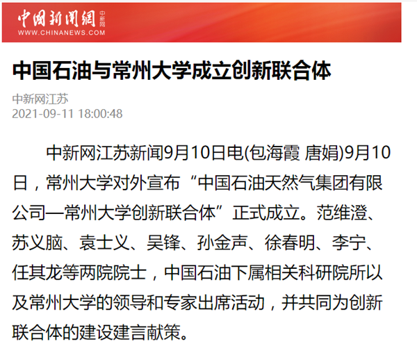 | 中国新闻网:中国石油与常州大学成立创新联合体 |