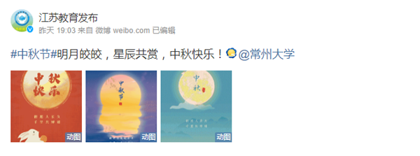 江苏教育发布(微博):#中秋节#明月皎皎,星辰共赏,中秋快乐!@常州大学