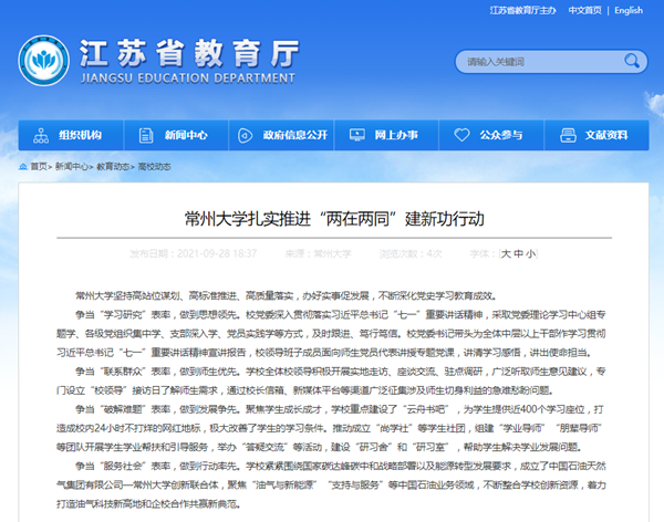 | 江苏教育网:常州大学扎实推进“两在两同”建新功行动 |