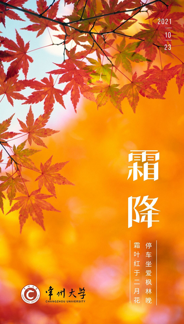 江苏教育发布(微博):风卷清云尽,空天万里霜。今日#霜降# ,是秋季最后一个节气。@常州大学