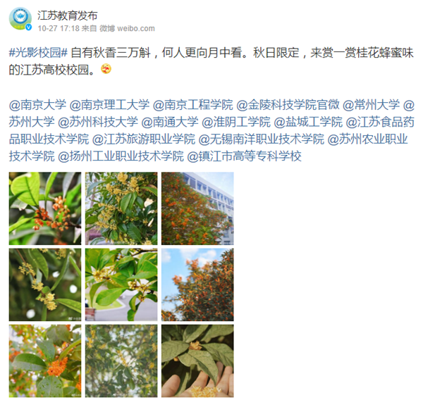 自有秋香三万斛,何人更向月中看。秋日限定,来赏一赏桂花蜂蜜味的江苏高校校园。