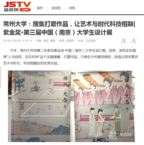 | 荔枝新闻:常州大学——搜集打磨作品,让艺术与时代科技相融|紫金奖·第三届中国(南京)大学生设计展 |