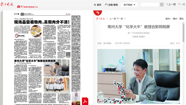 | 扬子晚报:常州大学“化学大牛”教授合影照刷屏 |
