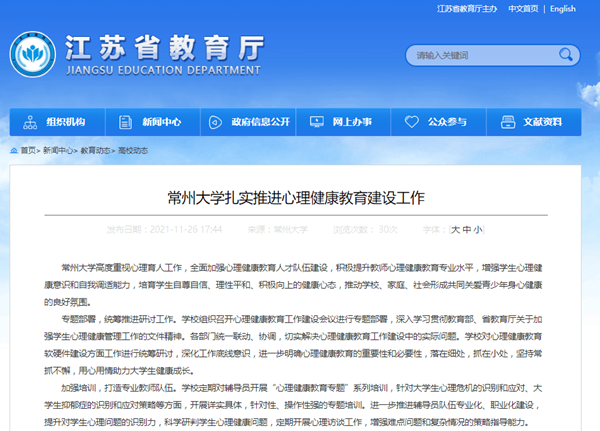 | 江苏教育网:常州大学扎实推进心理健康教育建设工作 |