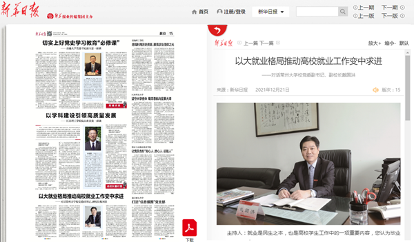| 新华日报:以大就业格局推动高校就业工作变中求进 ——对话常州大学校党委副书记、副校长戴国洪 |