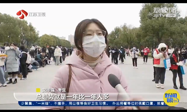 | 江苏卫视:2022年考研开考 江苏29.9万考生赴考 |