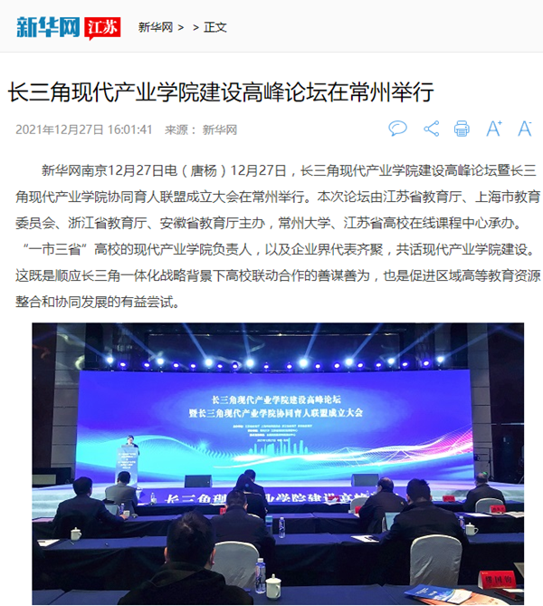 | 新华网:长三角现代产业学院建设高峰论坛在常州举行 |