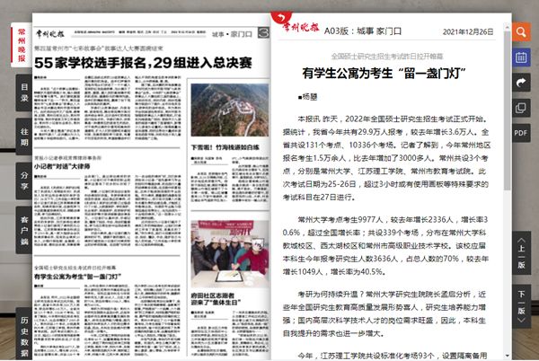 | 常州晚报:全国硕士研究生招生考试拉开帷幕 有学生公寓为考生“留一盏门灯” |