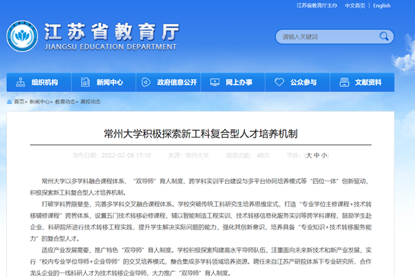 | 江苏教育网:常州大学积极探索新工科复合型人才培养机制 |