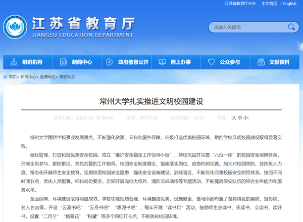 | 江苏教育网:常州大学扎实推进文明校园建设 |